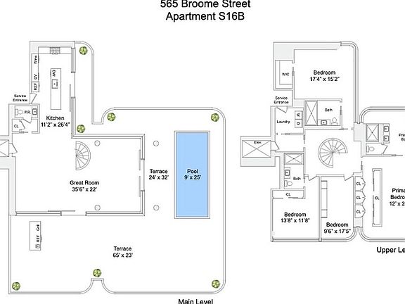 Welcome to Apartment S16B at 565 Broome Street, an extraordinary duplex residence located in a premier full-service doorman building in the heart of Soho. Spanning two expansive levels, this rare offering seamlessly blends indoor and outdoor living with exceptional privacy, space, and design, the likes of which you can rarely find in Manhattan. With four well appointed bedrooms and a large, sun-soaked private pool, Apartment S16B presents a purchasing opportunity that is not to be missed.