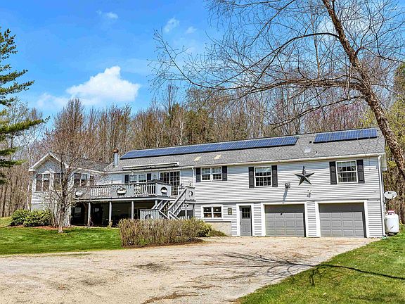 This lovely waterfront raised ranch is ready to welcome you home to Stoddard! On beautiful uncluttered center pond this 3 bedrooms, 2 full bath, very well cared for home is nicely settled on 4.48 acres at the end of Center Pond rd. 260’ of lake frontage on Center Pond with an ideal sandy beach area to enjoy every aspect of lake life! This home features one level living with a newly renovated kitchen, main level laundry and master bedroom jacuzzi suite. Solar panels, generator, pellet stove, 2 wood stoves and mini splits give you lot of heating and energy options. Ground level basement with a work shop area, 2 car garage, semi-finished craft room downstairs with lots of possibilities! This is the sale of 2 properties, deeded together, 4.2 acres with the house and 0.28 with the water frontage. In addition to the waterfront the yard offers established gardens, raised beds, garden shed and chapel building. There has been so much care put into this property and it's many unique features. The seller's are eager to find the new homeowners