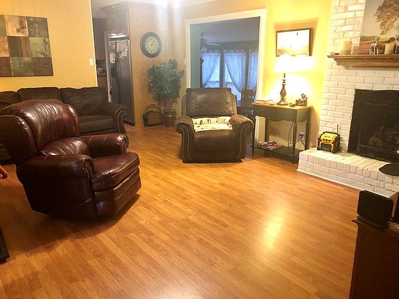 One level brick and vinyl home situated on 1.2 Acres! 3 Bedrooms featuring split bedroom plan. Master with large walk-in closet and recently enlarged bath. One Bedroom was converted from 2 bedrooms so it is large and has sitting area. Great Room features fireplace with gas logs (no propane tank currently on property). Step down to the large sunroom or dining room featuring ceramic tile flooring, New flooring throughout main living areas ( 2 years- vinyl hardwood look floating floor) The Kitchen features a removable island/bar. All appliances in kitchen convey with sale. Step outside to a concrete patio and a deck as well, Above ground pool conveys with sale. The steps and deck that lead to the upstairs over the garage are new. The space above garage is excellent storage space, but could be converted to a Rec Room or separate living quarters. In addition to double attached garage, there is a single detached carport. The storage building conveys with sale. CHECK OUT THE BARN !
