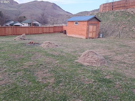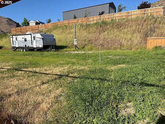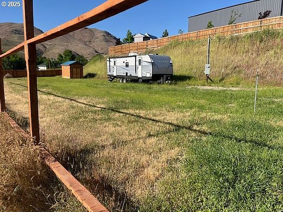 Nestled in the charming town of Huntington, Oregon, this property offers a fantastic opportunity for buyers seeking space and functionality. Spanning two lots and measuring approximately 150x100 feet, the property is partially enclosed by a 3/4 partial wood fence, providing a sense of privacy and security. It includes a small storage shed for additional utility and has essential services like water, sewer, and power already connected. As an added bonus, a 2021 28-foot travel trailer with a tip-out is included in the sale, offering modern comfort and versatility. The sloped terrain enhances its appeal, providing picturesque views of the surrounding area, city, and hills—a perfect spot to enjoy both tranquility and convenience.