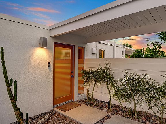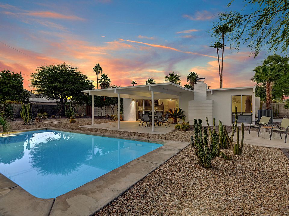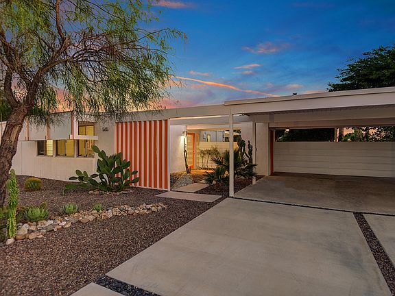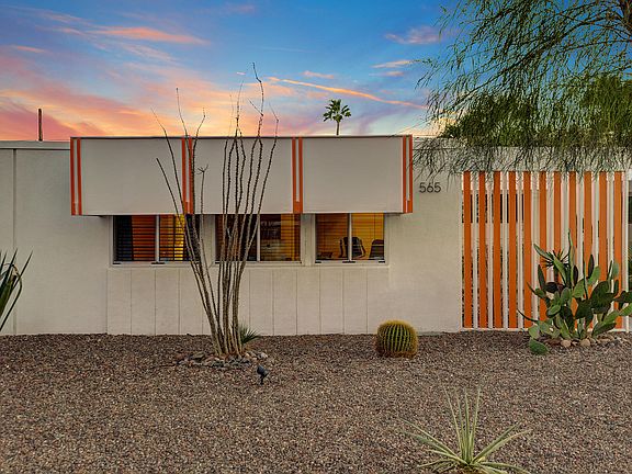 Welcome to 565 E Racquet Club Rd. This stunning Krisel designed 1959 home has been carefully brought into this century. Built by the Alexander Building Company, tastefully and meticulously cared for, offering the ever compelling flat roof design. This post and beam construction home, with tongue and groove ceilings throughout, showcases Palm Springs to perfection. From the striking curb appeal, to the incredible mountain views, this Racquet Club Estates residence is certain to please. Updates include 10 year enhanced white sealed roof, new HVAC, updated copper plumbing, abs sealed sewer lines, Low-E dual pane aluminum frame windows and sliders, 24 inch tile throughout, walker zanger kitchen backsplash and bathroom tiles, tankless water heater, updated kitchen, with caesarstone counters. In the backyard you'll find the post and beam patio covering creates the perfect shade space. Drift away in the all white tiled pool, taking in the zen like garden featuring numerous mature cacti, artfully placed stones, and multiple fruit trees. Schedule your private showing today!