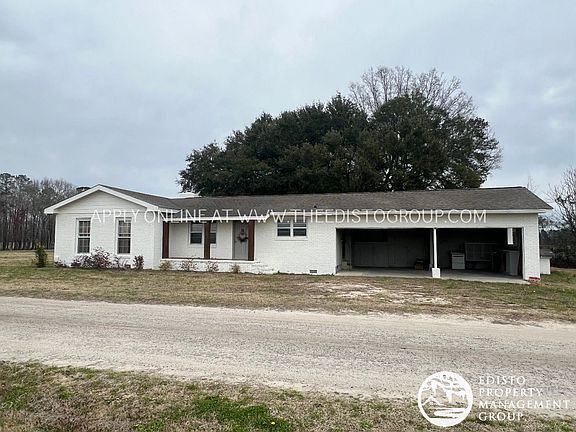565 Falls Drive in Bowman, South Carolina is a large single floor home in a country setting. The home is situated between several agriculture fields. When you enter the home, you have an expansive living room and storage closet. Another living room off the kitchen can be used as a formal dining room. The kitchen offers stove, dishwasher, refrigerator, and an abundance of cabinetry. There are two bedrooms and two full-size bathrooms. The master bedroom has its sole bathroom and French doors to take you on to back porch. Several closets and built-ins line the master bedroom for storage.