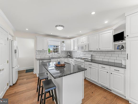 Welcome to 565 Kirk Drive — a picture-perfect brick colonial in Springfield’s highly sought-after Rolling Green community. This beautifully maintained home blends timeless character with thoughtful modern updates throughout.The newly remodeled open-concept kitchen is anchored by a large center island with granite countertops, a gas range, abundant cabinetry with soft-close drawers and doors, and generous counter space,—making it a natural gathering spot for everyday living and entertaining. The main level also features new flooring throughout, a spacious living room with crown molding, a full bath, and a four-season addition with a vaulted ceiling and direct access to the driveway. Upstairs, you’ll find four nicely sized bedrooms, including an oversized primary bedroom with recessed lighting and tons of natural light. An updated hall bath and convenient second-floor laundry is tucked neatly behind double doors. Outdoor living shines with a covered front porch featuring a beadboard ceiling and lighting, a rear deck and concrete patio, and a fenced yard with shed. The one-car garage and private driveway offer convenient off-street parking. Recent major upgrades include a new roof, new HVAC system, and new sewer lateral, providing long-term peace of mind. All of this, just minutes from I-476, I-95, Springfield’s town center, local parks, great schools, and only one block from Rolling Green Golf Club. A move-in-ready home where quality updates meet classic Springfield charm.