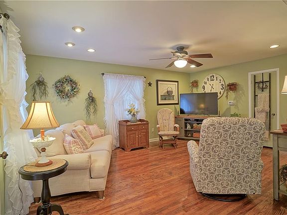 Move right in this beautifully decorated ranch home. Staged like an HGTV home! Fully updated kitchen with stainless appliances, pantry, eating area. There are hardwood floors on the first level in the living room and bedrooms. There is a full basement and a two car detached garage. There is additional paved parking space in the back yard. There is a deck on the front of the home. Updates galore: Kitchen with marble countertops, appliances, lighting, open shelving, subway tile, ceramic flooring; freshly painted interior of home; storm doors; chair rail in the three bedrooms; windows; furnace 3/15; glass block windows; basement walls and floors painted; ceiling fans.