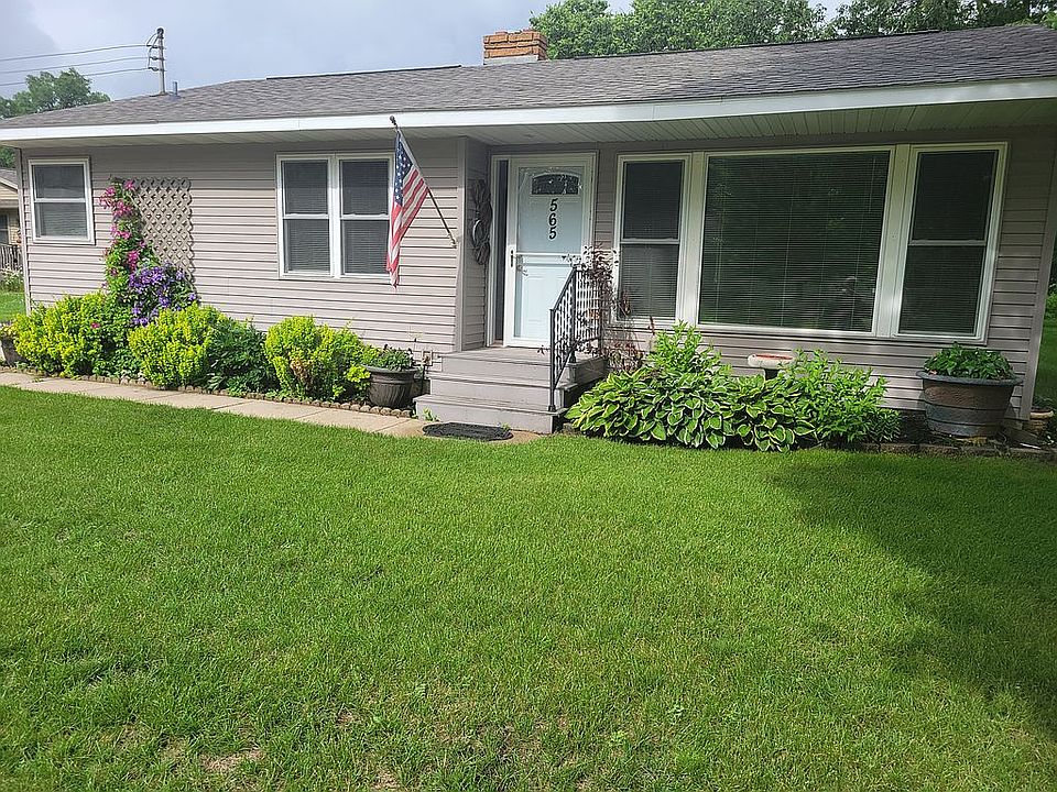 2 bdrm 1bath rambler with nice unfinished shed basement. Large master bedroom with large closets. Walk in shower with double sink vanity. Main floor laundry. Stainless steel appliances. New countertops. Roof in 2023. 18x24 insulated and heated single garage. Large backyard with apple trees and room for a garden. Lots of beautiful flowers. Nice concrete 10x20 patio. 8x10 storage shed.