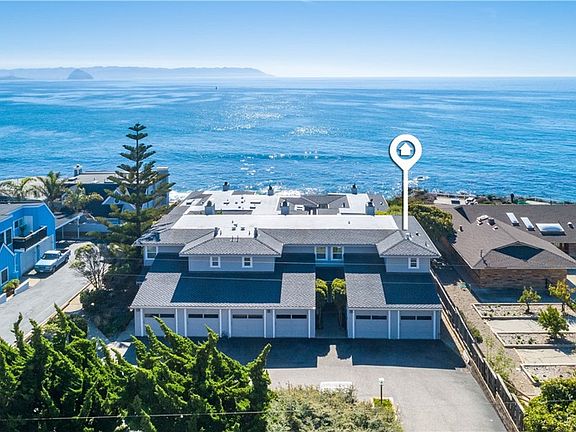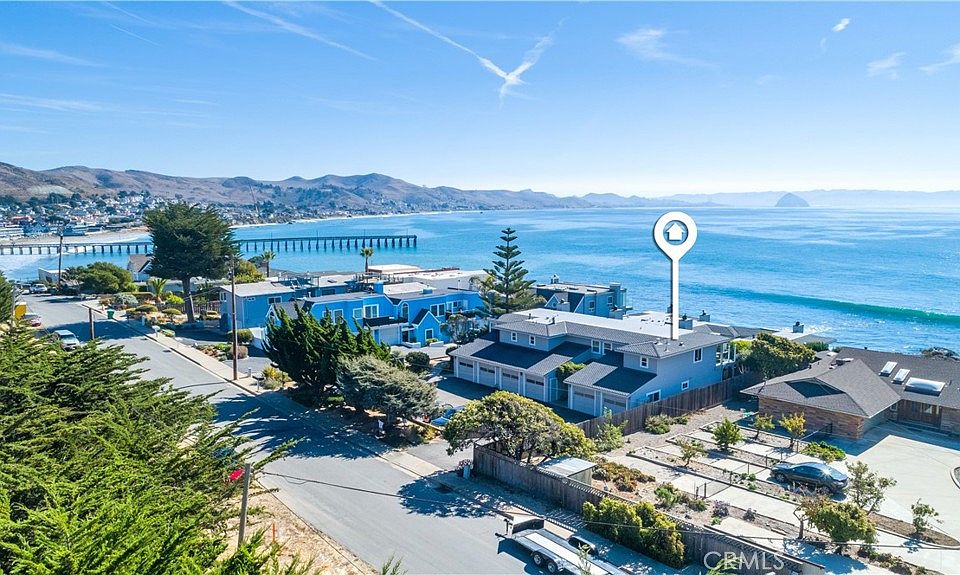 Settle in to enjoy some of the best views along Estero Bay, from the Cayucos Pier to Morro Rock, Montaña de Oro, and beyond. This modern, coastal-casual condo is move-in ready, nestled along the pristine coastline north of downtown Cayucos in a six-unit complex. Watch the amazing SLO County sunsets, migrating whales, and ocean life—all right from the comforts of home. The home is close to many coastal attractions, the Cayucos Pier, Vets Hall, shops, restaurants, and the coastal trailhead for Estero Bluffs State Park. The end unit maximizes window light without adjoining neighbors to the north and living spaces are southwest facing, with the upper floor views perched up above the neighboring condo rooflines. Plus, the deck off the dining room features glass panels to expand the views. A modern kitchen features quartz countertops, stainless steel appliances, and updated fixtures with an open living room and dining room with gas fireplace. All sleeping rooms are located on the ground floor. Two bathrooms include upgraded steam shower features and matching cabinetry and counter styles. You'll find multiple storage closets throughout home plus full-size stackable washer/dryer combo. Parking solutions include an attached single-car garage plus one additional reserved space. The semi-private entry features established foliage with a small, shaded yard area under the upstairs deck and shared landscaping services for common areas. Sale is subject to seller securing a replacement property. Cayucos-by-the-Sea awaits!