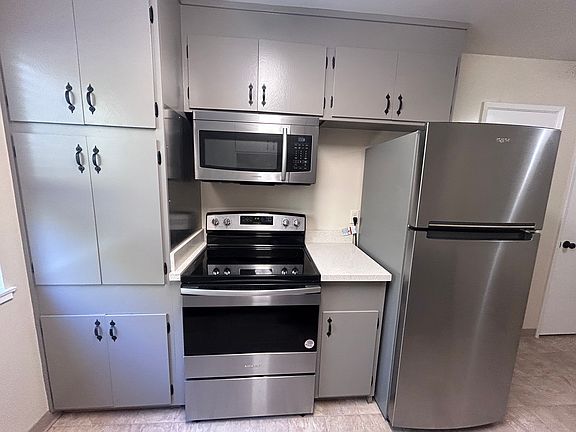 - Includes - Smooth Top Electric Range with Microwave Above, Large Refrigerator, Dishwasher. All stainless steel appliances.