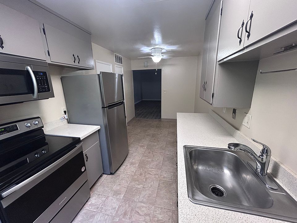 New two-tone paintLarge refrigeratorNew carpetStainless steel appliancesFan in kitchenGround floorLots of closet space