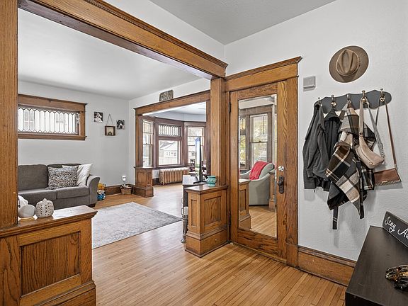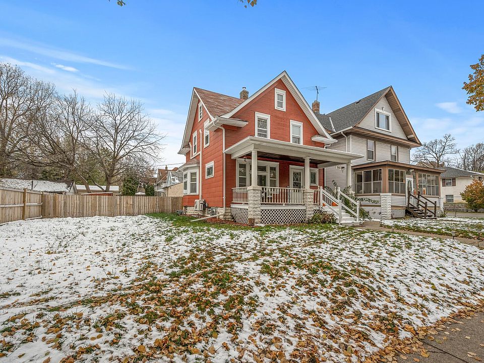 Beautiful St. Paul 2-story with high ceilings & refinished wood floors throughout. This home sits on a huge fenced lot with room to add a future garage. Recent improvements include; ductless mini split, new washer & dryer, all new paint including kitchen cabinets, all dining room wood work stained, new range hood, new light fixtures & ceiling fans The upper level provides access to a balcony that has a great view of the huge fenced backyard. with new privacy fence on south side of home. Tons of storage and room for expansion in attic and basement areas. Don't miss this well cared for gem!