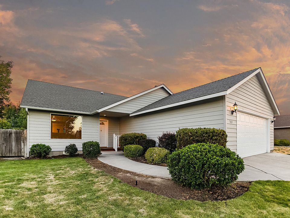 This comfortably laid out single level home with 3 bedrooms and 2 full baths delivers wide open spaces in living/dining room and the great room including the kitchen. The interior was recently painted, along with brand new carpet and woodgrain laminate flooring. There is a kitchen island with breakfast bar and pantry, primary bedroom wth walk-in closet and ensuite bath. Long counter with dual sinks, cabinets and walk in shower complete the feeling of spaciousness. 2 other spacious bedrooms with large closets are light and bright with large windows. A hallway leads to the laundry/mudroom that will take you out to the oversized 2 car garage with shelving and workbench. The backyard is currently low maintenance with gravel and pavers, but also has garden bed areas to grow plants to your heart's content. Situated on a corner lot in the northeast section of Madras in the Morning Crest Estates, you will have easy access to the hospital, aquatic center, Safeway, parks, Hwy 97 & Hwy 26.