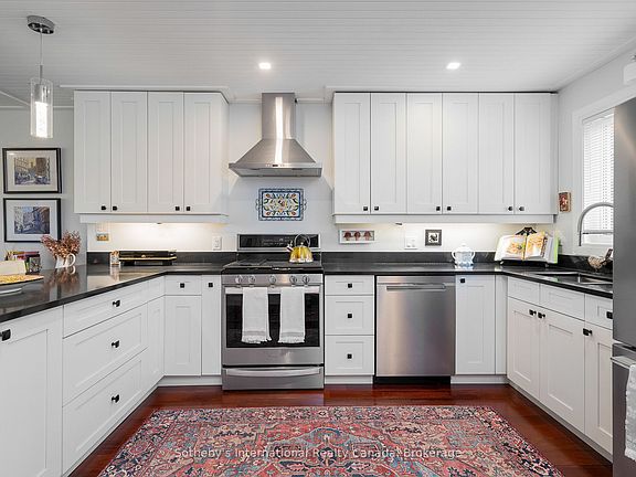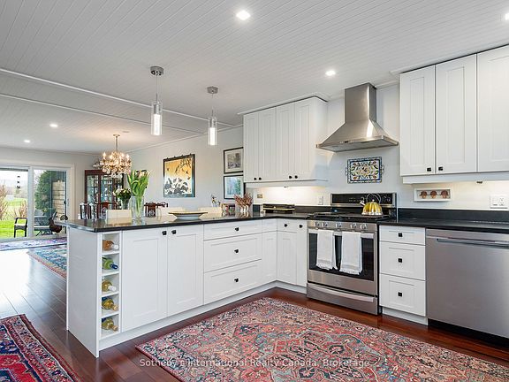 Seasonal Ski Rental - 565 Oxbow Crescent, Collingwood. Spend the upcoming ski season in style at this beautifully renovated end-unit townhome in the heart of Living Stone Resort. Backing onto the 18th fairway of Cranberry Golf Course and offering breathtaking views of Blue Mountain and Osler Bluff, this home is perfectly situated for winter enjoyment and apres-ski relaxation.This fully furnished, turnkey 3-bedroom, 2.5-bath residence offers over 1,700 sq ft of refined living space. The main floor features a bright, open-concept layout with engineered hardwood floors, custom millwork, and a cozy 500 BTU gas fireplace framed by a stylish living/dining area and a 55 mirrored TV. The chefs kitchen boasts Thomasville cabinetry, granite counters, gas stove, and under-cabinet lighting. Walk out to a private patio with BBQ hook-up, storage shed, and serene golf course views.Upstairs, the spacious primary suite includes a seating area, walk-in closet, and walk-out to a brand-new deck. The spa-like ensuite features a dual vanity, heated porcelain floors, a soaker tub, and a glass tile shower with rain head. Two additional bedrooms, one with a queen Murphy bed, offer flexible sleeping arrangements, while a second full bath and upper-level laundry add convenience. Additional features include new windows and doors, dimmer lighting, energy-efficient AC/heat pump, tankless water heater, and beautifully landscaped grounds. Just minutes to Blue Mountain, Osler, Craigleith & Alpine Ski Clubs, Scandinave Spa, downtown Collingwood, trails, and more. Cross-country ski right from your door. Available for the 2025 ski season.