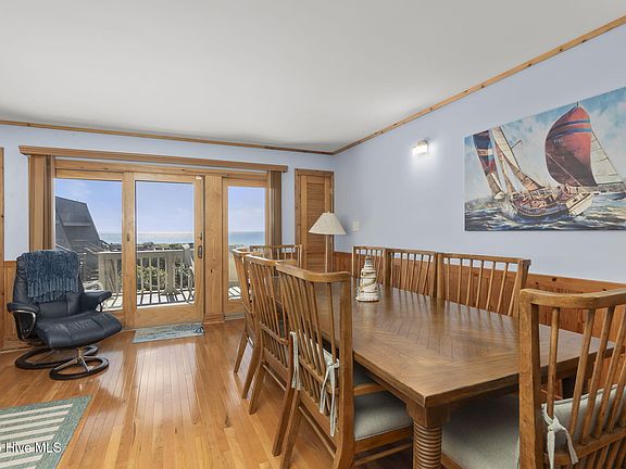 The ground floor provides convenient covered parking and a private entry into a bedroom that opens to a covered deck area with direct access to the boardwalk leading to the beach. This level also includes a full bath and laundry area. Up one flight you will find a guest bedroom with an ensuite bath and private balcony. From there, you will enter the main living area with stunning views of the ocean and a large deck perfect for listening to the waves. As you head to the primary bedroom, you will pass another guest bedroom with its own private bathroom and balcony. The top floor features the oceanfront primary bedroom with a private deck providing sweeping views of the beach and ocean, along with an updated ensuite bath.