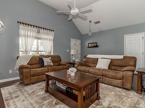 Move in ready ranch on large cul de sac lot! The spacious great room/dining combo with vaulted ceilings and new wood flooring flow nicely into the eat-in kitchen with tons of cabinet space, tile flooring, and pantry. The wood flooring continues through the main living area to the owner's suite that features a large soaker tub, seperate shower & dual vanities. The remaining two bedrooms are a great size and feature fresh paint and wonderful lighting. A cozy covered rear porch overlooks the private feeling yard thanks to the fence and don't forget property extends well beyond and backs up to the community's common area!