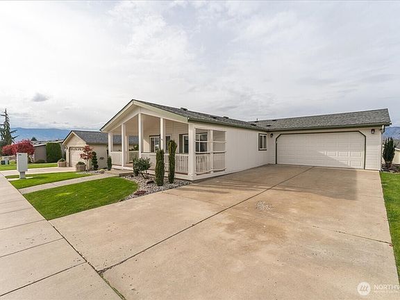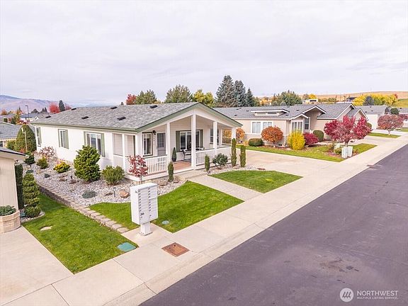 Welcome home to easy living in this beautifully maintained 1,144 sq. ft. 3-bedroom, 1.75-bath home located in a secure 55+ gated community. Vaulted ceilings and an open-flow layout create a bright, airy feel, while mature landscaping and charming front porch invite you to relax and take in views of the Wenatchee foothills. The utility room comes complete with washer, dryer, and extra storage for convenience. Enjoy friendly neighbors, top-down blinds, and a park-like setting with a clubhouse, pool, and year-round community gatherings—where comfort, connection, and peace of mind come together.