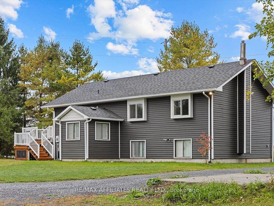 Space, privacy, and versatility, this country home in Hammond delivers it all. Sitting on a .686-acre lot, it offers the peace of rural living with quick access to Hwy 174 and just minutes from Orleans and Clarence-Rockland. Highlights include a spacious detached multi purpose garage with power, wood stove, 3 garage doors, and 2 man doors perfect for hobbies, storage, or a workshop. The property is zoned RU2, allowing flexible use for rural residential living, hobby farming, or small-scale business opportunities. Inside, the main floor is bright & inviting, featuring hardwood floors, crown moldings, tongue-and-groove ceilings, stainless steel appliances w/ a gas range, granite counters, & large bay windows that fill the home w/ natural light. Three bedrooms share a beautifully renovated 4 pc bath. The finished basement offers a large rec room, fourth bedroom, 3 pc bath, new carpet, fresh paint, legal egress windows, & a secondary rear entrance perfect for a future in-law suite. Enjoy a concrete patio with white railings, landscaped grounds, interlock front walkway, and multiple driveway access points from Joanisse & Vinette Rd. This home perfectly blends carefully maintained country charm with modern updates and city convenience. 24hr irrevocable on offers.