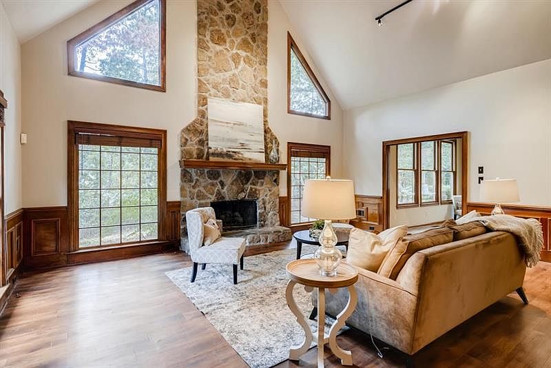 This beautiful five bedroom five bath home sits above the road in the popular country club community of Horseshoe Bend. The bright spacious main floor has a two-story foyer, a lovely living room, office/bedroom, an open vaulted great room with a fireplace, large dining room with French doors out to deck and partially wooded, private backyard. The kitchen opens onto a beautiful sunroom with lots of natural light. Step out and enjoy the peaceful surroundings on the private deck or relax on the swing.