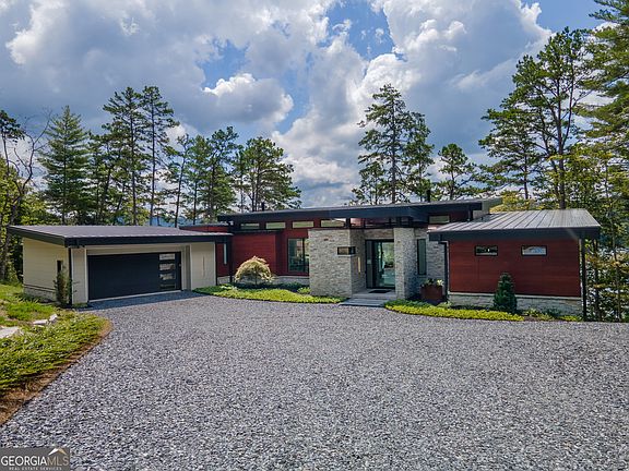 Seamless fusion of indoor and outdoor spaces, clean crisp lines and use of the latest high tech, low maintenance building materials define this 5 bedroom, 6 full bath and 2 half bath mountain contemporary Lake Burton home. The main level was designed to provide a comfortable and refined lifestyle with the great room featuring European white oak flooring, a sleek linear fireplace and a wall of glass framing picturesque views of Lake Burton overlooking pristine Billy Goat Island. The customized chef's kitchen features Leicht cabinetry, a waterfall island and Subzero and Wolf appliances. A grilling deck, lakeside screened porch with fireplace and full-length deck provide space to enjoy the outdoors with Lake Burton as the backdrop. The spacious main floor owner's suite boasts a wall of glass showcasing lake views, a spa-like bath with Terrazzo tile flooring, Porcelanosa vanities, Bain ultra-air tub, separate shower and walk-in California custom closets. An impressive floating staircase with European white oak treads leads to the terrace level with 3 ensuite guest bedrooms each with a lake view, an office/flex room with a full bath, laundry room and a family room with full bath and wet bar. Enjoy easy access via a stone pathway to the 2-stall boathouse with Timbertech decking, screened porch and open sun-bathing deck. Additional features include: low maintenance Prodema wood siding from Spain, low maintenance exterior Nichiha concrete panels from Japan, Genesis elevator, Somfy automatic shades, Control 4 home automation, 2-car garage, private 1.125 acre lot and much more. (*Contact agent for list of finishes and features) 4480 sq. ft Heated space 2587 sq. ft. garage, covered decks and porches.