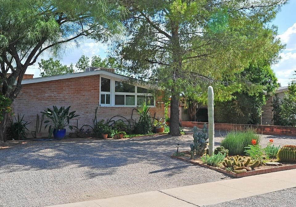 This charming 3 bedroom 2 bath mid-century brick home boasts pride of ownership! From the beautifully landscaped front yard to the welcoming entry way, you will feel the comforts of home. Spacious floorplan with vaulted ceiling and a cozy wood burning fireplace. Updated kitchen and baths with an open family room or formal dining room off kitchen. Wonderful entertaining home with a covered side yard and outdoor fireplace that lead to a lap pool and lush grass area. Rain Harvest tank and 12 x 18 storage shed to convey with the home. Owners for the last 42 years have done so many updates on this home, from underground utility lines to replacing sewer line. Roof is 8 years new, AC is 7 years new, you can't afford to miss this one!