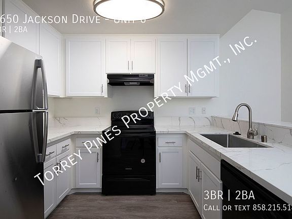 Jackson 23 Apartments is now offering a beautiful 3 bedroom apartment with beautiful quartz countertops, fresh paint, laminate flooring, mirrored closet doors, ample storage, spacious closets, cozy fireplace, stainless steel appliances, and so much more. Residents get the whole package at Jackson 23 with a community pool, spa, onsite laundry, onsite management, and garage parking for additional $200 rent per month. Our location places you close to all that La Mesa has to offer, including the historic La Mesa Village lined with eclectic shops and restaurants, and the La Mesa Farmers Market operating every Friday. If you find yourself needing a dose of nature, check out the Mission Trails Regional Park or Lake Murray, just a few miles down the road. Call today to learn more about our well-managed community! Pets are allowed with additional pet rent and deposit. Assistive animals accepted. No utilities included. Jackson 23 Apartments All Applicants must have the following: -Verifiable Monthly Income of 2.5 Times the Monthly Rent -Good Credit and Rental History -A Valid Drivers License or Identification -Renters Insurance Required. Professionally managed by Torrey Pines Property Mgmt. Inc. *PHOTOS ARE OF A SIMLAR UNIT* Community Pool And Spa Mirrored Closet Doors Onsite Laundry Quartz Counter Tops Vinyl Plank Flooring