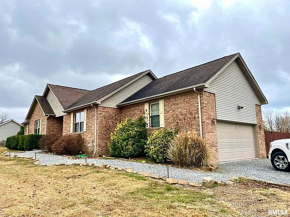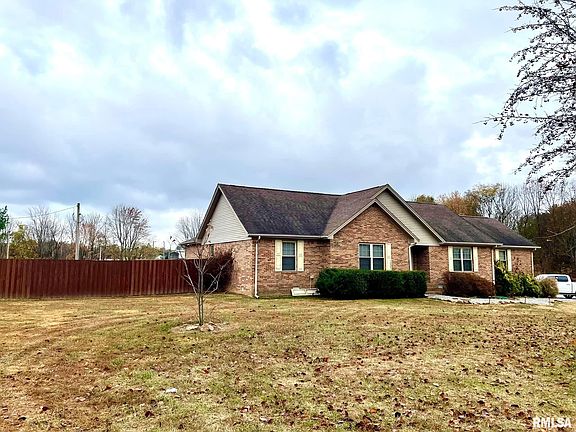Three Bedroom and Two Full Bath Ranch on one full acre in Massac County. Open floorplan with kitchen open to the dining & living room areas. The living room features a gas log fireplace and cathedral ceiling. The primary bedroom measures 21x19 and includes a large walk-in closet and private full bath with dual vanity. There are two additional bedrooms both nice in size with large closets. The back yard is privacy fenced with fruit trees, several varieties of berry bushes, an herb garden, established asparagus, grape vines and beautiful flowering bushes creating your own private retreat. Flooring Allowance Available!