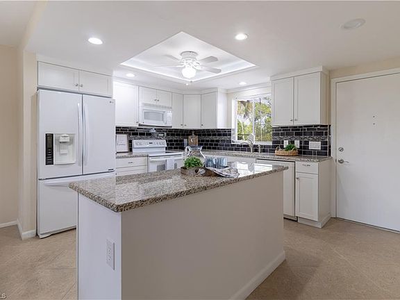 LOCATION, LOCATION, LOCATION! Don't miss the opportunity to call this spacious 3 bedroom, 2 bath condo home! This condo checks all the boxes; open floor plan with a RENOVATED KITCHEN, GRANITE countertops, large kitchen island, washer and dryer, master en-suite with walk in closet, plenty of natural light throughout, MOTORIZED storm shutter on the lanai and assigned COVERED PARKING. Enjoy your morning coffee or evening cocktail in your screened lanai overlooking a landscaped area and golf course. LOW CONDO FEES! Just steps away from the community pool, and a short drive to 5th Avenue, shops and the beach, this is a hidden gem.