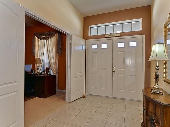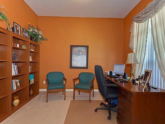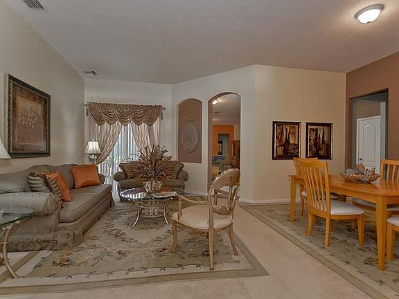 This spacious home is situated on a .21 lot with beautiful views of two ponds and conservation and offers 3,016 heated square feet, 5 bedrooms + den, 3 full baths, a half bath, formal living and dining, family room, laundry room, and a 2-car garage. The open kitchen features a center working island, closet pantry, highbar, and large breakfast nook. Sliders from multiple rooms provide access to a large screened and covered lanai. The oversized master suite has two walk-in closets, separate vanities - one with a dressing table, a raised garden tub, and a large shower. Bedrooms two and three are of generous size and share a hall bath. The fourth bedroom is at the back of the home and has a large window with a stunning view of a pond and conservation and a full, en-suite bath, making it perfect for guests. The fifth bedroom is upstairs, has a 2 closets and en-suite half bath. This home has neutral ceramic tile and carpet throughout with the exception of the fourth bedroom which has "parquet look" vinyl flooring. Other features of this clean and well-maintained home include a manicured lawn, double door entry with transom, volume ceilings, arched doorways and wall niches, blinds, security and sprinkler systems, two air conditioning units, and all kitchen appliances stay.