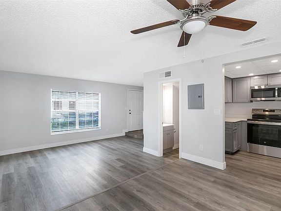 This stunning 2-bedroom, 1.5-bathroom condo has been completely remodeled and is move-in ready! Featuring a modern shaker-style kitchen with elegant quartz countertops and sleek stainless-steel appliances, this condo blends style and functionality perfectly. Enjoy the fresh look of new interior paint, luxury vinyl plank flooring, and plush carpeted bedrooms. The roof (approximately 6 years old), AC (approximately 4 years old) and water heater (new) provide peace of mind for years to come. Interior stackable washer/dryer hook ups. No flood insurance required, and the property remained unaffected by past hurricanes. Located within walking distance to all that downtown New Port Richey has to offer- restaurants, bars, shops, parks, boat ramps, and entertainment!