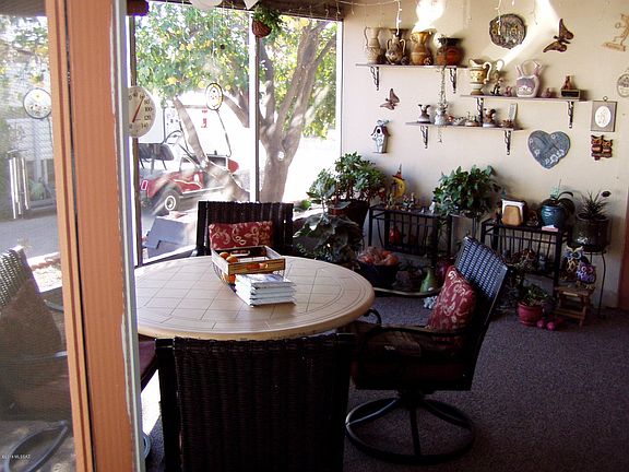 Beautiful adobe exterior--2 bedroom--2 bath home with many recent upgrades including: central a/c furnace, dual pane windows, flooring, bathroom and kitchen appliances--screened patio-large storage/workshop plus additional storage shed. You own the land in this 55+ subdivision and the use of golf course, pools, tennis courts, and many other amenities. Some furniture available with separate bill of sale.Owner will consider carry back with acceptable terms.