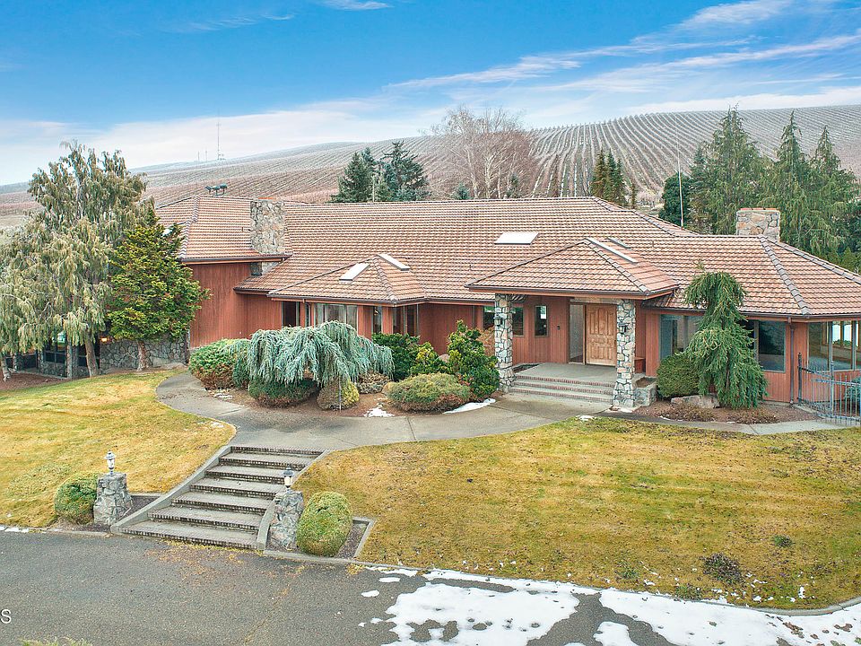 Privately Located Custom Built with Great Amenities! Open concept living at its finest with sweeping views, vaulted ceilings and an indoor sport/game pool which features walls of windows/doors to home's expansive central living space. In all, 5 bedrooms, 5 baths, private office, lower level rec/entertaining room with wet bar. The property also features 3-bay attached garage plus 3750 square foot 2-bay insulated and heated shop with a small office. Fenced pasture for animals with underground sprinklers. Full size basketball court, outdoor water feature, wine grapes and easy freeway access. Close to wine country in Yakima and Benton Counties.