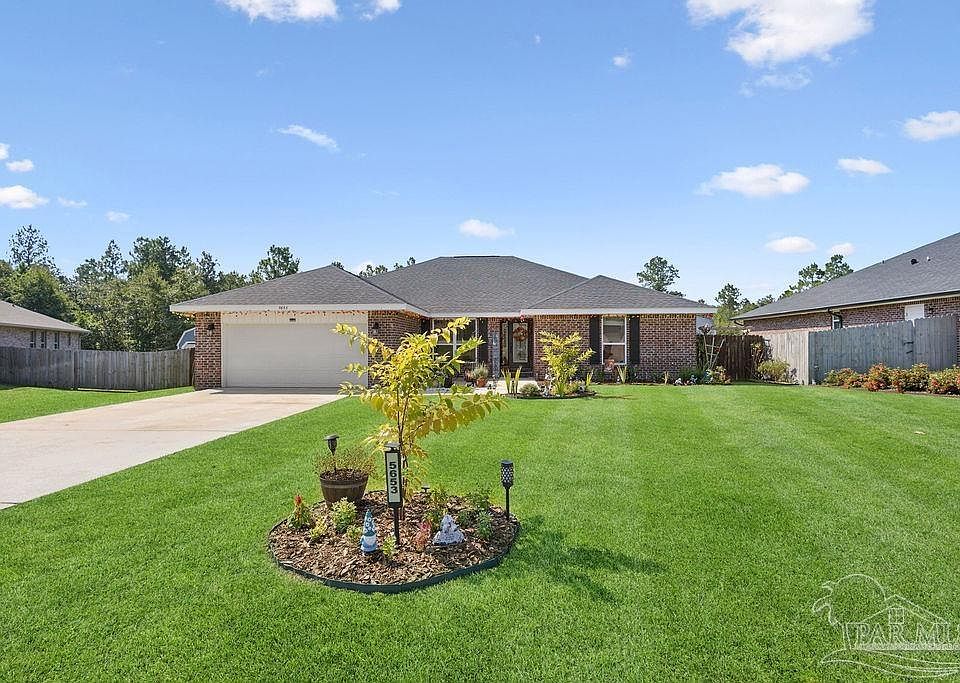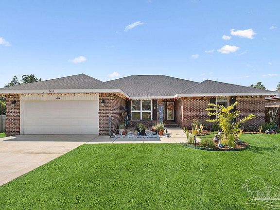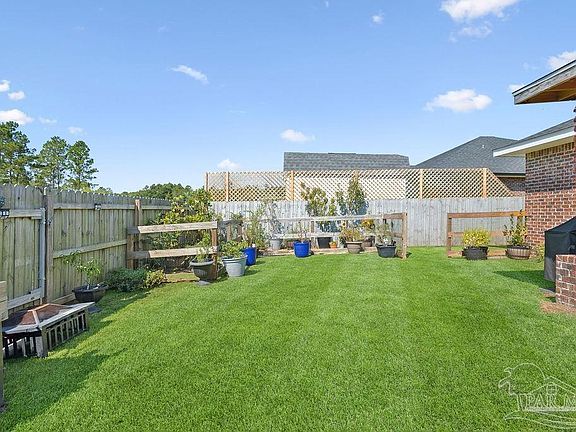 OPEN HOUSE scheduled for Saturday, October 18th • 10 a.m. – 2 p.m. Drive by after dusk to see the Halloween lights, witches, and festive decor. Come see the home by day, then swing back by night for the spooky glow! Welcome to this spacious 4BR/3BA home with office/bonus room located in a quiet, one-way-in, one-way-out neighborhood—perfect for families! The kitchen features granite countertops, a large island with breakfast bar, a roomy breakfast nook, and a walk-in pantry. The split bedroom layout includes an oversized master suite with a large shower, double vanities, private water closet, and a large walk-in closet. Bedrooms 3 & 4 share a Jack and Jill bath, while Bedroom 2 has a full hall bath nearby. A separate bonus room offers the flexibility to be used as a home office, playroom, or whatever best suits your lifestyle. This room is a fully insulated interior-access room with secure electronic entry which adds even more versatility—ideal for remote work, a quiet studio, or hobby space. Newly installed luxury vinyl plank flooring runs throughout the main living areas, offering a modern, durable, and easy-to-maintain finish. Enjoy the open patio, fenced backyard with double gate, and a custom-built storage building—ideal as a workshop, man cave, or she shed. The home also features a full-yard sprinkler system on city water for easy lawn maintenance and an annual termite bond to be transferred at closing. Centrally located near I-10, shopping, Whiting Field, NAS Pensacola, and top-rated schools. Just 30 minutes to the beach!