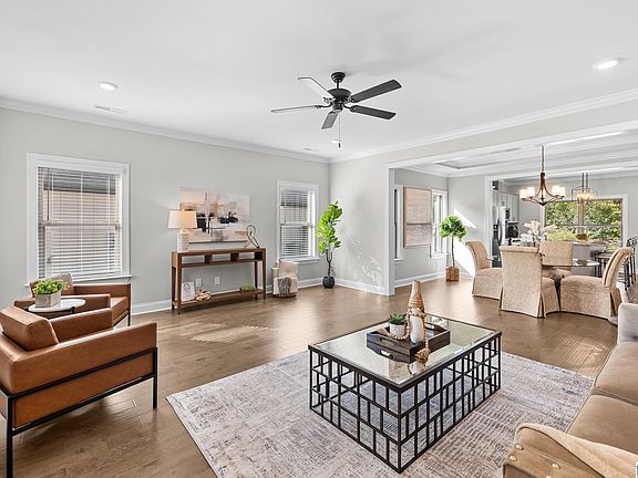 Main-level primary suiteThree generously sized bedroomsTwo walk-in closetsDual vanitiesSpacious island with seatingKitchen features granite countertopsFlexible living space