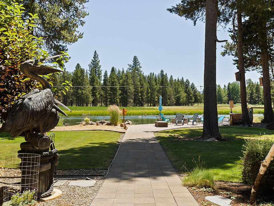 Rare riverfront locationBig deschutes riverDirect river accessSurrounded by pinesQuiet roadExpansive paver patioOutdoor kitchen