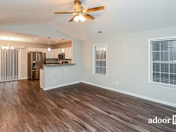 Open floor planWindow coveringsStainless steel appliancesCeiling fan
