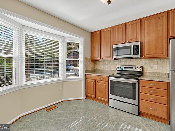 Welcome to 5654 Ridge View Drive, a beautifully updated Blair model backing to trees in Alexandria’s desirable Loft Ridge! The 3 dormer windows and meticulously landscaped garden bed give this home nice curb appeal. Inside, gleaming hardwood floors welcome you on the main level and continue up the stairs and throughout the entire upper level. The kitchen is flooded with natural light from a box-bay window and has been exquisitely remodeled with tile floors, stunning Silestone countertops, a chic ceramic backsplash, 42” cabinetry with brushed nickel hardware, sleek stainless appliances and a deep sink with a swan-neck faucet. The separate dining room features classic chair rail, while the living room is enhanced by elegant crown molding. From the living room, step through the sliding glass door to a paver patio and into the serene, tree-lined backyard—an ideal space for relaxing or entertaining. Upstairs, all three bedrooms are bright and airy, enhanced by large windows and complemented by modern ceiling fans. The spacious owner’s suite includes a walk-in closet with built-in shelving, and its en-suite bath offers a pocket door, a modern vanity and a shower with floor-to-ceiling tile. The lower level boasts an expansive rec-room centered around a cozy fireplace with a slate surround and a detailed wood mantel, perfect for winter evenings. There is also a convenient powder room with ceramic tile flooring and a pedestal sink, extra storage under the stairs, and a big laundry/utility room. Some updates to this wonderful residence include the HVAC system and stamped concrete patio with built-in umbrella (2024), gutters and siding (2019), the paver patio and stainless kitchen appliances (2015). Loft Ridge residents enjoy community amenities such as walking trails, a tot lot, and tennis and basketball courts, supporting an active lifestyle. Located within walking distance of public schools and just minutes from the vibrant City of Old Towne Alexandria, this home offers a wonderful blend of modern updates, suburban comfort, and urban convenience!