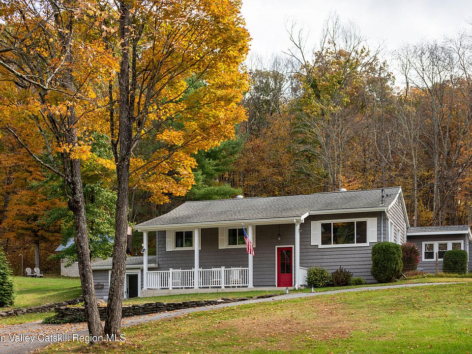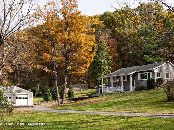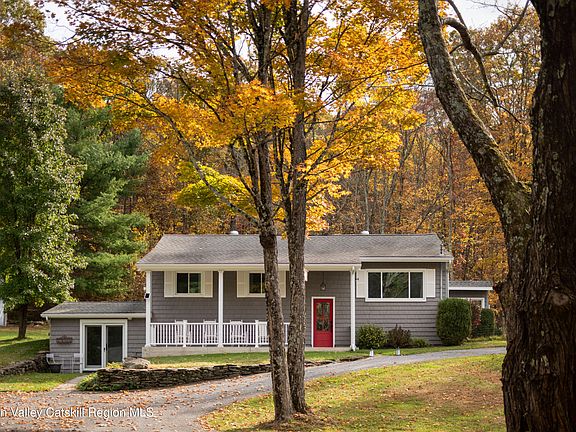 Set back from the road on 8 private acres, this turnkey home offers privacy, comfort, and a well maintained, peaceful retreat. Featuring renovated kitchen and bathrooms, all new windows and French doors, new gutters, a gas fireplace, and additional upgrades throughout, this home has been thoughtfully improved with quality updates inside and out. A legal three bedroom currently used as a two-bedroom, it includes two and a half baths, an open kitchen and dining area with a large island, Bosch appliances, and a breakfast bar. The living room features a gas fireplace and opens to a back patio for easy indoor-outdoor living. The lower level provides flexible space with an extra room, den, and bar area featuring a wood-burning stove. French doors lead outdoors, just a short distance from the above ground pool with a custom tigerwood surround. Additional features include a detached two-car garage and a fenced side yard, ideal for pets. Trails through the wooded property connect directly to the Whitlock Preserve, offering miles of scenic hiking right from your backyard. Located just minutes from the Taconic State Parkway, 10 to 15 minutes from Millbrook and Pine Plains, and 30 minutes from Rhinebeck, this property is perfect as a full-time residence or a peaceful country retreat.