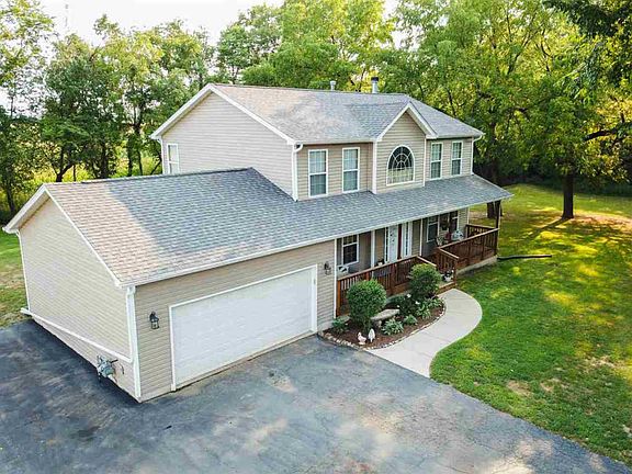 FIND SERENITY IN THIS GORGEOUS LARGE 2-STORY, 4 BR HOME NESTLED ON ONE ACRE BORDERED BY TREES, PRIVACY FENCE & CORN FIELDS. This home has a formal dining room & LR. The sunny carpeted family room is open to the formal LR, dining area & kitchen, and features a cozy fireplace. The kitchen & dining area boast new lux linoleum, black appliances, a breakfast bar, & a separate large pantry. 1st floor laundry. The MBR features full BA with jetted tub. The LL has potential for additional living space as it is partially exposed & already framed out for extra rooms, has a toilet, and is plumbed for a vanity and shower. Sliders in dining area lead to a big deck that overlook the peaceful yard with a shed, chicken coop, and creek running along the west end of the property. The garage is insulated and heated with additional parking on side! The property is zoned AG, assessed rural improved - bring your animals! Roof, siding & gutters done in 2018, new fence 2019, painted 2020. DO NOT MISS THIS ONE!