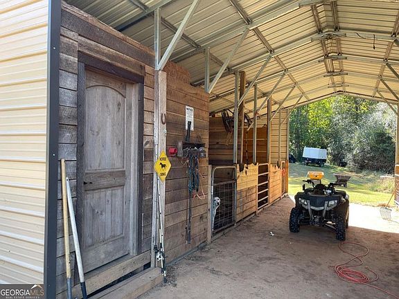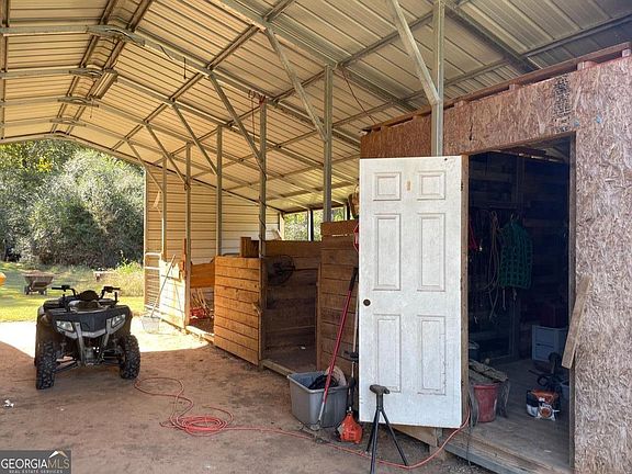 2 acre mini horse farm with 3/2 mobile home that has a metal roof. Great 36x36 metal barn with 6 stalls, feed room and tack room. There is a large riding ring that needs some TLC and a round pen. An additional 8x15 shed. Perfect for a couple of horses or remove the mobile and build a new home. Great opportunity to have a large lot, close to shopping and schools but with plenty of privacy.