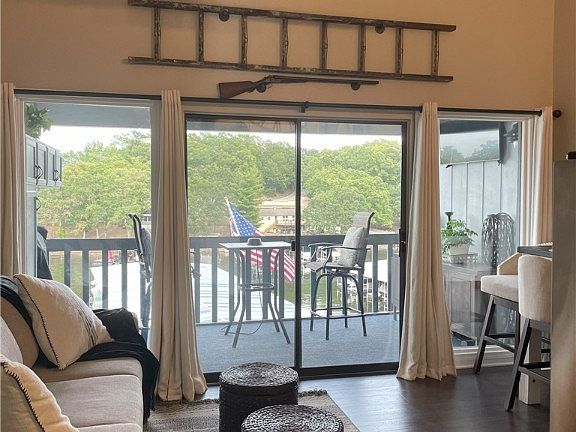 So much to love in this top floor condo at Heron Bay! Fully remodeled by full time owners with much attention to detail. Gorgeous engineered hardwood floors throughout. Stylishly updated bathroom with tile floors, wood look tile walls, shower doors, new vanity and extra shelving. The vaulted ceilings add an extra spacious feel. Granite countertops in kitchen with SS appliances and backsplash. Cute barn door separates bedroom that holds a king size bed and don't miss the added bonus attic storage above the bedroom. Water heater and furniture are new in '23. Relax on the covered porch with main channel views, TV and nice additional cabinetry on porch. The 10X24 slip (association allows for 4ft "stick out") with hoist included can be seen from the porch. Also includes extra large dock box on slip. Resort style condo pool is a short distance away also. This is move in ready and ready for you to enjoy as your lake property or would also make a great investment opportunity.