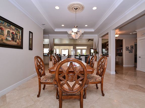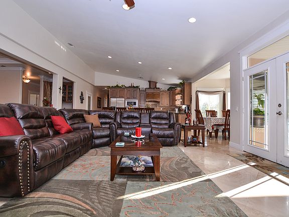 Gorgeous uniquely built custom horse property on almost an acre. If you have dreamed of living in a luxury ranch style home, look no further. This home was designed to entertain!! Walking through the door of this beautiful home you will come into an open floor plan that offers a formal dinning room with a custom seating area with exceptional cabinetry. The kitchen features solid maple cabinets throughout with built in stainless steel appliances with a huge island with plenty of storage. Large open living room with a entertainment built in center. A nice addition is the dry bar for your entertainment needs. This home also has over sized bedrooms to accommodate your large furniture and closet with built ins. This home presents a very large 18"x19" sq ft master suite that has marble slab shower with Jacuzzi bath tub and large walk in closet. Work from home in your tailor-made office. Home offers unique 4 1/2" crown molding in most rooms. Spacious laundry room. All bathrooms have marble slabs. Upscale 1000' 4 car tandem garage with single car back garage door that will accommodate your toys or a man cave delight!! Outside offers covered patio, with a abundance of fruit trees that have irrigation system. Not to far from the Paradise Knolls Golf Course!