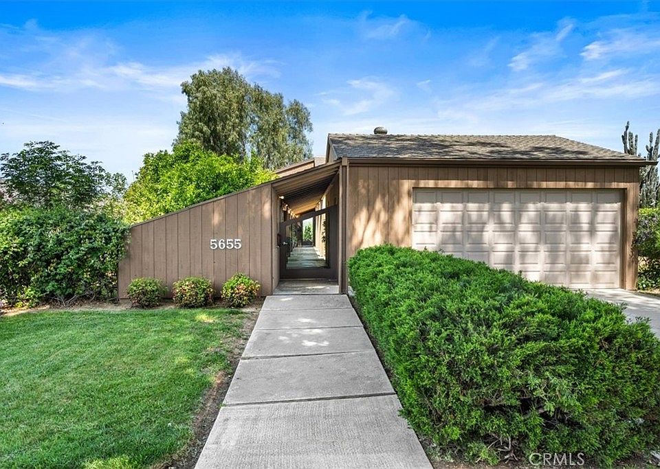 San Gabriel Mountains inspired the design of a midcentury home with a vacation atmosphere. The garage and 6 ft. hedges shield the private world from the street. You enter through the gate in the covered walk and focus on a glimpse of the view through the glass door and the entrance wing. The compact 2 story house straddles a 2 ft. drop on the northern third of the lot at the cliff. The location takes advantage of the view (NNW) and the shade of existing trees (S and W). The wings shade each other. 3 trellis covered patios, soon overgrown with vines, are shady "outdoor living rooms" for the enjoyment of different views, activities and seasons. On hot afternoons, cool air from here enters through hopper windows into the living room, and cross ventilation carries warm air out the kitchen window. For heating and cooling economy the volume of the interior is restrained. The "open feeling" exists in a moderated way, abstaining deliberately from multilevel high spaces or extensive glass areas.The entrance and stair wing acts as an airlock, and sliding doors for air flow control can seal off parts of the house. Both floors are served by separate HVAC units in the roof well, so that just the area in use, less than half the volume, can be climatized.The living room is a family room. The dining room doubles as study. The garage opens to the court for grocery delivery to the kitchen window and for yard maintenance, etc. The well insulated wood frame structure is clad in cedar siding. Interior accent walls and all sloping ceilings are also cedar. Special finishes include the 4 x 8 blue glazed ceramic tile on the ground floor. Stair risers and the fireplace hearth are clad in 4 × 8 charcoal quarry tile. Kitchen and bathroom floors are cushioned sheet vinyl. Interior doors and cabinets are birch, hand rubbed with oil stain and protected with varnish. Cabinet doors and drawer fronts have hidden finger grooves instead of pulls and hidden self-closing hinges for a clean expression of the overlay wood slabs.The south patio has a built-in cooking counter. There is a storage cabinet on the balcony above.The 2 story arrangement yielded articulated private open spaces such as the orchard along the covered walk, the court under the old tree, lawn for volleyball, quiet ornamental garden on the view side, 3 patios and beautiful vistas from every living space in the house.The property is irrigated with a water saving drip system.The house reflects the owners' appreciation of nature