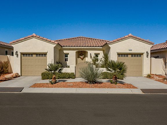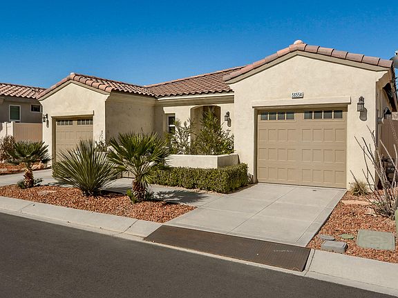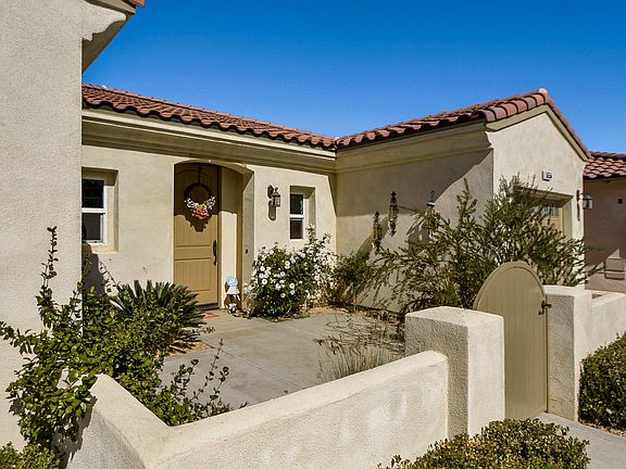 This home in the gorgeous desert landscape of Yucca Valley and within the gates of the beautiful 55+ adult community of Desert Vista Village lays this exceptional 1,279 SF (est.), 2 bedroom, 2.5 bathroom home that was built in 2015. The front courtyard framed by the unique double garages enhances this homes exceptional home's curb appeal. Inside the home you are greeted with a large great room/dining room and kitchen that is complete with a fireplace, quality engineered stone counters, stainless steel appliances, center island, and beautiful dark wood-look flooring. No carpet in the entire home! The master bedroom has a private bath with dual sinks, a step in shower and a walk-in closet. The guest bedroom has an attached full bathroom with a glass-enclosed shower/tub. The community amenities offer a superb example of the ideal desert lifestyle. Here you will find a large resort-style pool, spa, fitness center, billiards room, putting green, bocce courts -- all conveniently located just steps from the home! If you are searching for great value in new 55+ community, then look no further than this exceptional home!