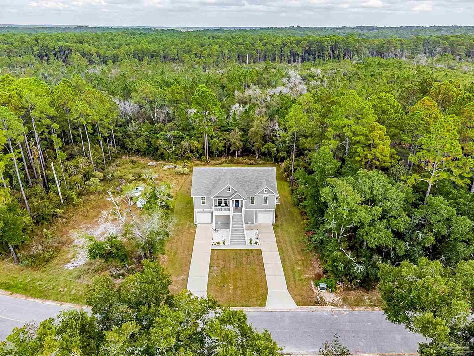 Welcome to this exceptional residence offering the perfect blend of luxury, privacy, and convenience. Situated on a tranquil dead-end street in a peaceful, small neighborhood, this home boasts breathtaking elevated views of Perdido Bay and the adjoining Wildlife Management Area, making it the ideal retreat while being just minutes from downtown Pensacola and Perdido Key. This expansive home features a 4-car garage with additional space for storage or a potential game room, along with a drive-through driveway for added convenience. The property is also framed for an elevator, providing easy access to the main living areas. Inside, you'll be greeted by an open-concept living and dining area, seamlessly connected to a gourmet kitchen with a large island, top-of-the-line appliances, and marble countertops. A spacious walk-in pantry is conveniently located adjacent to a large laundry room with ample space for a second refrigerator, ensuring plenty of storage options. The home is designed with quality finishes throughout, including porcelain tile and hardwood floors. The master suite is a true sanctuary, featuring a luxurious en-suite bathroom with a soaking tub, a large walk-in shower, a double vanity, and a spacious walk-in closet. Step outside to the covered lanai, perfect for entertaining, and ready for an outdoor kitchen and TV – ideal for watching the big game or enjoying the serene woodland setting. The home’s maintenance-free Hardee Plank siding and high-quality exterior trim provide peace of mind, while the expansive views create a peaceful atmosphere for relaxing or entertaining. Walk to the neighborhood waterfront park to enjoy some fishing, kayaking, paddle boarding, etc. This is more than just a home – it’s a lifestyle. Come see for yourself and experience all the charm and elegance this property has to offer.