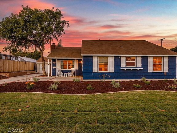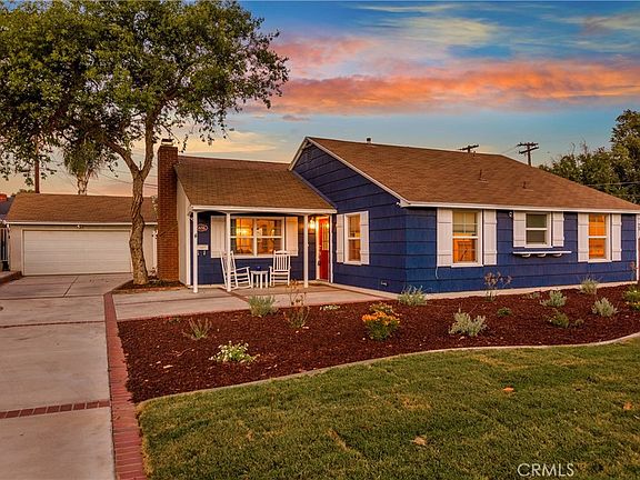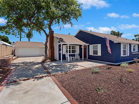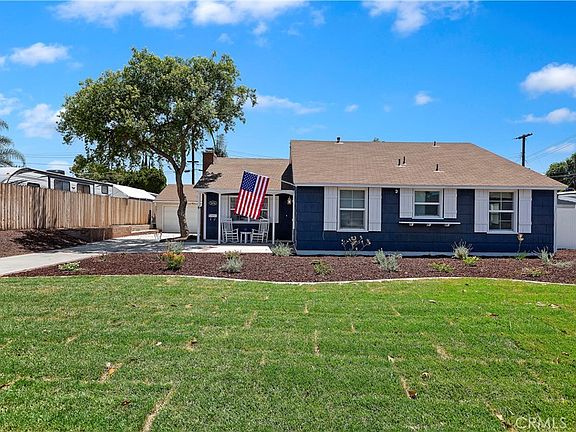 This single story home is reminiscent of a beautiful Cape Cod Beach House and is located in the desirable Cowboy Streets. This home has an abundance of natural light, creating a warm and welcoming ambiance. The expanded open floor plan seamlessly connects the living room, dining area, and kitchen, making it perfect for entertaining family and friends. Upgrades include a hall bathroom remodel with double sinks and vanity and tall glass doors, laminate flooring, interior doors, baseboards, crown molding, ceiling fans, replaced HVAC system with ductwork, water heater, dimmable LED recessed lighting throughout, windows and window treatments. Ring camera is included. Kitchen is open to the living room and includes a vintage stove. The large primary bedroom offers French doors leading to the beautiful yard. The tropical backyard includes a sparkling swimming pool and spa, a full length Alumawood covered patio with ceiling fans and lights, as well as many upgrades including artificial turf, a stone retaining wall, vinyl fencing with led string lights. Pool motor was just replaced July 2023. Potential for RV parking. Electrical panel upgraded to add an electric vehicle charger(included). Close to great schools, shopping, and freeway access! With no HOA and low taxes, this home is sure to sell fast.