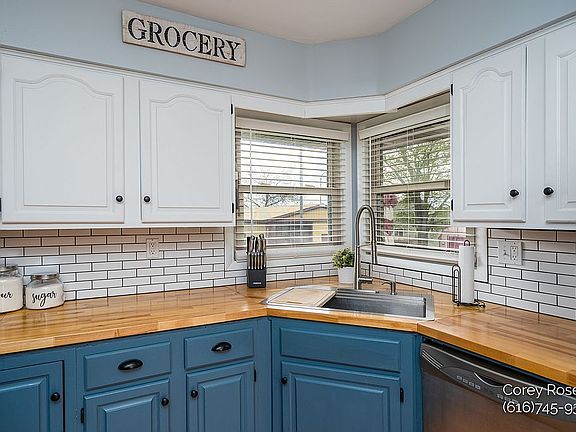 Welcome to this charming 3-bedroom, 2.5 bathroom ranch on almost 2 acres in the desirable Grandville school district, conveniently located less than 5 minutes from shopping, dining and entertainment. This home is move in ready and has been updated with a completely remodeled farmhouse-style kitchen with butcher block counters and stainless steel appliances, convenient main floor laundry and a luxurious full-bath with granite countertop, heated tile floor and a rainfall shower. This home also has a spacious great room with plenty of natural light from the large bay windows. Spacious master bedroom with 2 closets and hardwood floors in the 2 remaining bedrooms. The recently updated basement has a wet-bar complete with built-in fridge and under-bar lighting, large entertainment area, full bathroom and a finished office space that has potential to be a 4th bedroom. Two spacious storage areas with additional lower-level laundry. Outside you will find a 30’x48’ pole barn, a 14’x24’ outbuilding and a 10’x10’ shed, patio and fire pit. Private showings welcome Open house Sat, May 15 from 1pm-3pm Call/text (616) 745-9336 All offers must include a lender’s pre-approval or verification of funds letter to be considered. Not searching for realtor.