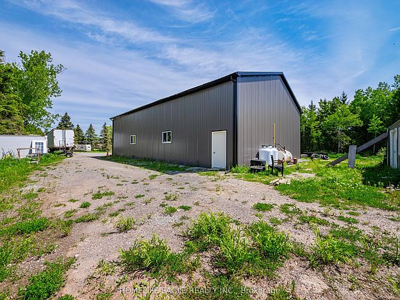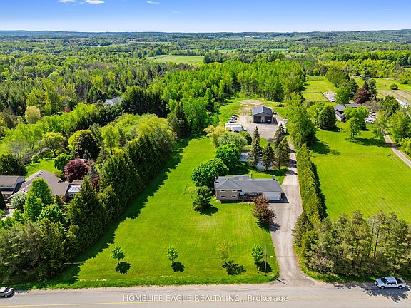Discover the lifestyle you've been dreaming of at 5657 6th Line. This exceptional detached family home is set on 10.71 flat * Featuring 3+1 bedrooms and 3 full bathrooms, the home boasts an open-concept layout with a custom kitchen that includes a granite center island and countertops, stainless steel appliances, and elegant pendant lighting all leading to a walk-out deck overlooking your private backyard oasis * A newly built, commercial-grade detached workshop spans 2,400 sq. ft. and is designed for serious work or business use. Highlights include soaring 16-18 ft ceilings, two 14 ft roll-up doors, a hydraulic car lift, industrial-grade concrete floors, overhead heating, full insulation for year-round usability, built-in workstations, and abundant power access. This space is ideal for trades professionals, vehicle storage, or operating a home-based business *The finished basement offers additional living space with a bedroom, recreation room, and a full kitchen with a separate walk-out to the backyard * Step outside and unwind in your private, enclosed backyard featuring a spacious covered deck, a 6-person hot tub, and stunning views of the surrounding greenery and pond. The serene pond is complete with a floating dock and a central fountain, all nestled among mature trees for unmatched privacy and tranquility * Located just minutes from Highway 400 and Highway 9, this property offers convenient access to GO Transit, GO Terminals, and schools, parks, golf courses, horseback riding facilities, and local farmers markets providing the perfect blend of rural privacy with urban connectivity.