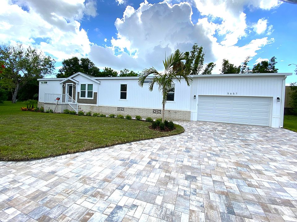 Amazing, Brand New 3/2 with GARAGE! Located in a resort style, active, gated, age qualified (55 years and older), land leased community (where you own the home but lease the land it resides on). Newly constructed, spectacular, spacious, 3 bedrooms/2-bathroom home with 2 car garage. Expansive, open, living and dining areas (wood style plank flooring adds to the flair and sophistication) lead into an amazing kitchen with large center island, splendid cabinetry, farm sink, exceptional counter space and stylish, stainless-steel appliances. Large, enclosed, screened patio off living room leads out to private backyard space that backs up to community perimeter wall. Primary suite fit for royalty with roomy walk-in closet and attached ensuite bathroom with floating, double vanity featuring lighting underneath as well as custom tiled shower (with a fold down seat) and lighted rain shower head. Two well sized guest bedrooms as well a guest bathroom (tub shower combo unit). Extra-large laundry room with storage cabinets and direct access to 2 car garage. Outside, fully landscaped front and rear yards. This gorgeous home exudes quality at every turn. Make your appointment today to tour this extraordinary home. It will not last long! Located in a premier, 55+, gated (with attendant) community. Featuring a fantastic clubhouse, inviting pool and jacuzzi beside the lake, fitness center, sports courts, library, game room and activities galore! Close to all the wonderful sights, restaurants, shopping, and beaches of beautiful Sarasota. Paradise is waiting for you! (Base lot rent is currently $1558 per month plus $156.23 pass through tax. Total $1714.23 and includes water, sewer, trash and lawn mowing).