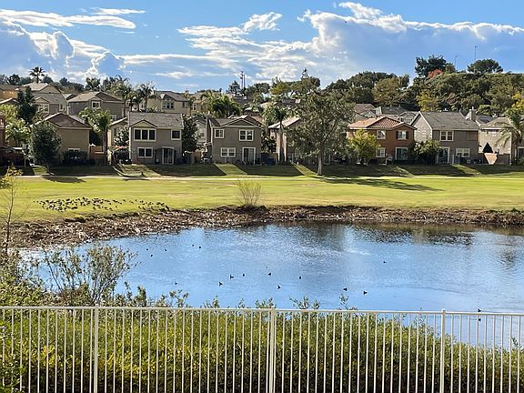 This 1,936 sf gated community home of 4-bedroom 3-bath is located on the Indian Hills Golf Course. Its backyard directly faces the community pond inhabited by lovely birds and ducks seen from the kitchen and dining area. Next to the living room there is a library which can also be used as an extra bedroom. Kitchen has newer granite counter tops and lots of upgraded cherry wood cupboards. Kitchen also comes with dishwasher and a double door refrigerator. Separate laundry room has washer and dryer hookups. As you walk up the beautiful stair case to the second floor, you will see a hallway lined with closets and cupboards for your linens and blankets in addition to a full bathroom. All 4 bedrooms are on this level with laminate flooring . Master bedroom with vaulted ceiling enjoys extra large windows overlooking the green golf course and the pond. Jack and Jill master bathroom layout, walk in shower, walk in closet, tile flooring. Second, third and fourth bedrooms also have good sized windows inviting plenty of light into them, and they all have a mirrored closet door. Front yard is nicely landscaped with volcanic rocks and backyard with a covered patio and a productive citrus tree. This home is turnkey and ready for a qualified family to rent and make it their home!