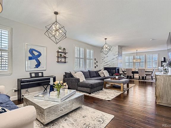 Beautifully updated 4 bedroom, 4 bath home backing to open space! This home features a spacious kitchen with oversized quartz island, stainless appliances, lots of storage and separate dining area. The open space behind the home provides the perfect setting to relax on the back and enjoy Colorado outdoor living! The inviting living room offers a generous space with 3 sided gas fireplace. On upper level is the primary bedroom with 5 piece bath and spacious closet. Two additional bedrooms and full bathroom complete the upper living area. Enjoy the additional family room in the finished basement with walkout access to the backyard. The basement flex space can be used as a second office, workout area, or any other space you may want to iutilize it for. It is currently being used as a bedroom. This superb location is within very close proximity to highly sought after Rock Canyon High School and Rocky Heights Middle School with trails leading to the schools. Quick drive to Highlands Ranch, Castle Pines and the Tech Center.