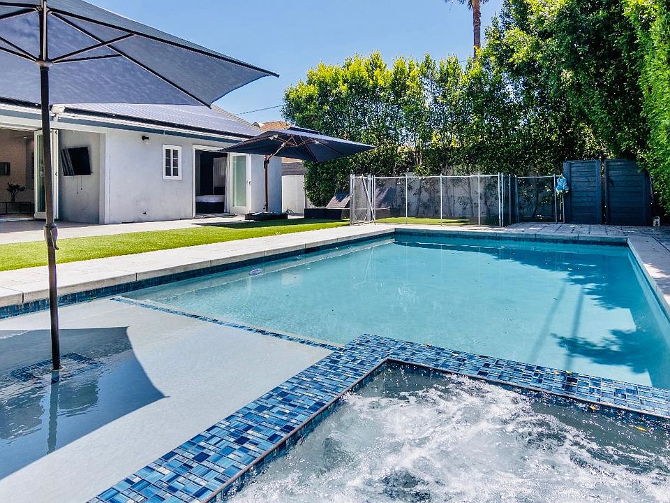 Modern Comfort Meets Timeless Charm in Valley Village Welcome to your serene retreat nestled on a tranquil street in the heart of Valley Village. This partially furnished 4-bedroom, 2.5-bathroom single-family home seamlessly blends contemporary amenities with classic elegance, offering an ideal sanctuary for families or professionals seeking both comfort and convenience. Property Highlights: Spacious Living: 2,000 sq ft of thoughtfully designed living space featuring tile flooring in common areas and rich hardwood in all bedrooms. Gourmet Kitchen: A custom-designed, high-end kitchen equipped with modern appliances, perfect for culinary enthusiasts. Smart Climate Control: Stay comfortable year-round with a smart central AC system. Outdoor Oasis: Enjoy a private pool and spa, complemented by a beautifully landscaped patio with an outdoor barbecue and seating area ideal for entertaining or relaxing. Eco-Friendly Features: A solar power system reduces electricity bills, promoting sustainable living. Secure Parking: A private motorized gate leads to a two-car driveway, ensuring security and convenience. Fully Equipped Bedrooms: Each bedroom comes furnished with beds, mattresses, nightstands, and closets, as depicted in the photos. Additional Accommodation (500 SF ADU) An optional attached 1-bedroom Accessory Dwelling Unit (ADU) is available for an additional $1,500 /month. This suite includes a fully equipped kitchen, full bathroom, and in-unit washer and dryer perfect for guests, extended family, or a private office space. Availability & Terms: Available: Starting July 1, 2025 Rent: $8,950/month (main house) Lease Term: 1 year Utilities: Tenant responsible for all utilities, including pool maintenance ($120/month) and gardening services ($120/month) Pets: Cats and small dogs allowed Smoking: Not permitted inside the house Experience the perfect blend of luxury and comfort in a peaceful neighborhood setting. Don't miss the opportunity to make this exceptional property your new home. For more details or to schedule a private showing, please visit the Zillow listing. Renter responsibility to pay utilities including pool maintenance ($120 a month) and Gardner ($120 a month). No smoking allowed inside the house. Private showing is available.