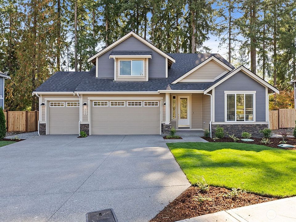 Introducing the Madrone plan in Trosper Woods—Rob Rice Homes’ newest Tumwater community where timeless design meets everyday comfort. This thoughtfully designed home on a ¼-acre lot offers 2,745 sq. ft. of flexible living with a main floor primary suite plus an additional bedroom and nearby ¾ bath. The open kitchen is ideal for gatherings, featuring rich “Charcoal” stained Maple cabinets, quartz counters with full tile backsplash, and upgraded KitchenAid appliances. Upstairs, a loft, full bath, bedroom, and den/flex room offer endless possibilities. Energy-efficient features include solar panels, cold-climate heat pump, triple pane windows & recirculating hot water. Located close to I-5, parks, schools—and Costco just minutes away!